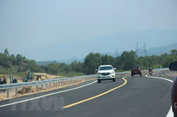 Các phương tiện lưu thông trên Cao tốc Nha Trang-Cam Lâm. (Ảnh: Phan Sáu/TTXVN)