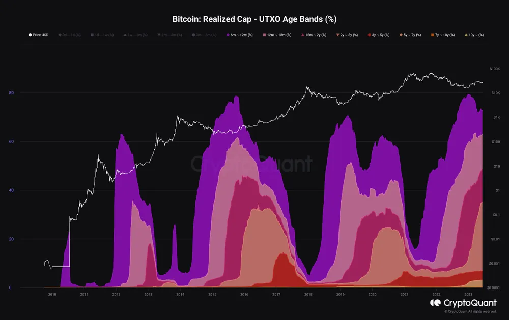Biểu đồ thứ hai mô tả tỷ lệ phần trăm Bitcoin được nắm giữ bởi những holder dài hạn, có thể so sánh với các chu kỳ thị trường trước đó. Dữ liệu này ngụ ý rằng bất chấp những biến động thị trường gần đây, các nhà đầu tư Bitcoin vẫn tin tưởng vào triển vọng dài hạn của tài sản. Sự ổn định được thể hiện bởi những holder dài hạn củng cố quan điểm rằng Bitcoin không chỉ là một công cụ đầu cơ ngắn hạn và làm nổi bật khả năng phục hồi của tiền điện tử trong bối cảnh thị trường không chắc chắn.