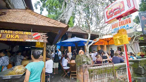 Ibu Oka là nhà hàng babi guling danh tiếng nhất ở Bali. Bạn có thể hỏi bất kỳ ai trên đảo và mọi người đều chỉ đến Ibu Oka ở Ubud, nơi nổi tiếng với khỉ, đền đài và những lớp yoga cho phụ nữ phương Tây. Các cửa hàng babi guling thường mở cửa rất sớm, từ 4 - 5h sáng tới 9 - 10h tối.