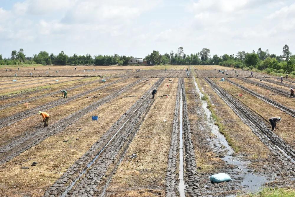 Ông Tư Lâm (xã Khánh Hưng, huyện Vĩnh Hưng) cho biết, gần 2 ha dưa hấu của gia đình trồng đã được hơn 20 ngày, đang sinh trưởng tốt, dự kiến sẽ thu hoạch vào tháng Chạp. "Nhờ hướng dẫn của ngành nông nghiệp địa phương, bà con biết cách chọn giống tốt, đất cũng được phơi khô ráo rồi xử lý vôi bột và trộn với một số phân hữu cơ để tái tạo lại", ông Lâm cho biết.