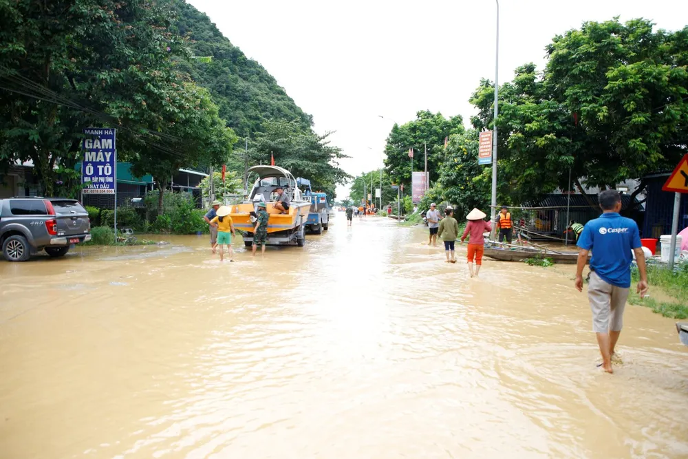 Những người dân ở đây đang huy động thuyền để có phương tiện di chuyển. Họ cho biết, từ khoảng 23 giờ đêm 22-7, mọi người đã di chuyển đồ đạc; tuy nhiên, các hộ gia đình cũng chỉ di chuyển được các vật dụng thiết yếu, còn nhiều vật dụng, lúa gạo ngập chìm trong lũ.