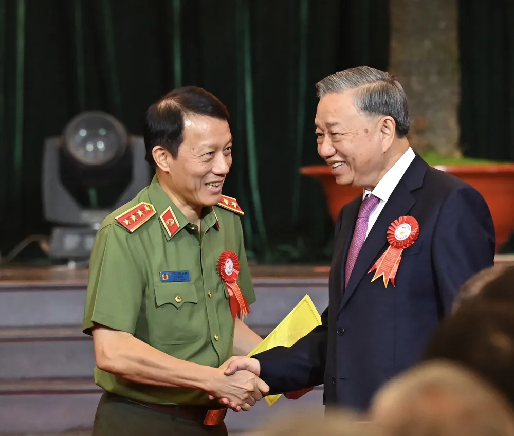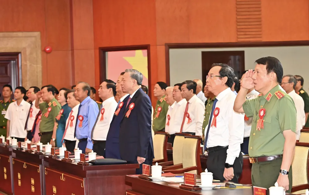 Thay mặt lãnh đạo Đảng, Nhà nước, Tổng Bí thư, Chủ tịch nước Tô Lâm nhiệt liệt biểu dương và chúc mừng những thành tích, kết quả mà TPHCM và lực lượng Công an nhân dân đã đạt được trong thực hiện Di chúc của Chủ tịch Hồ Chí Minh. Đồng chí Tô Lâm chúc mừng 79 năm Ngày truyền thống Công an nhân dân và 19 năm Ngày hội "Toàn dân bảo vệ an ninh Tổ quốc"; chúc mừng thành tích, chiến công mà Công an TPHCM đã đạt được trong thời gian qua.