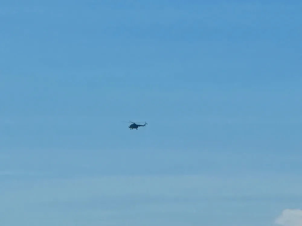 Trực thăng sư đoàn 372 đang trên đường ra Lý Sơn hỗ trợ tìm kiếm 3 trường hợp mất tích. Ảnh: Chi cục Thủy lợi tỉnh Quảng Ngãi