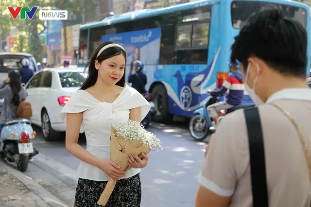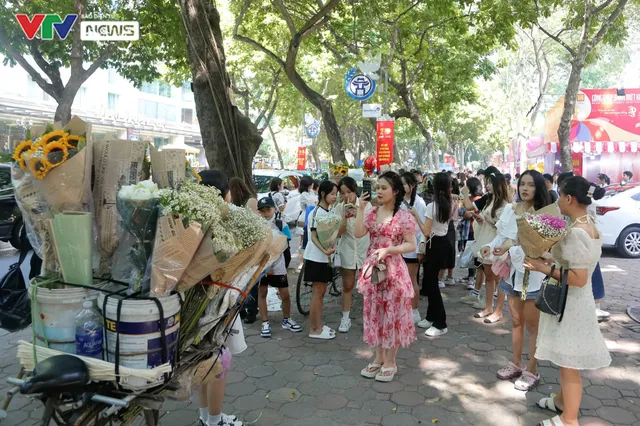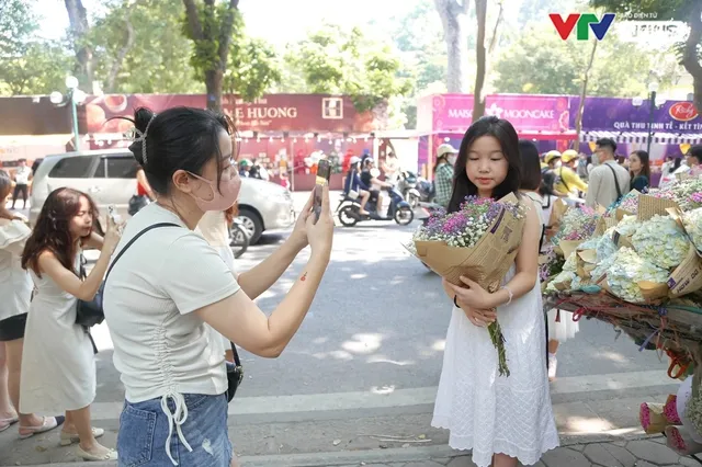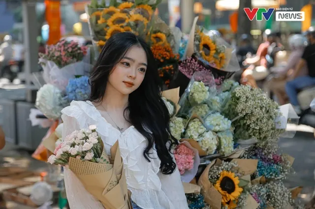 Dịp nghỉ lễ, nhiều bạn trẻ đã đến đây, lựa chọn cho mình những bó hoa xinh xắn để chụp ảnh kỷ niệm. (Ảnh: Quang Hải)