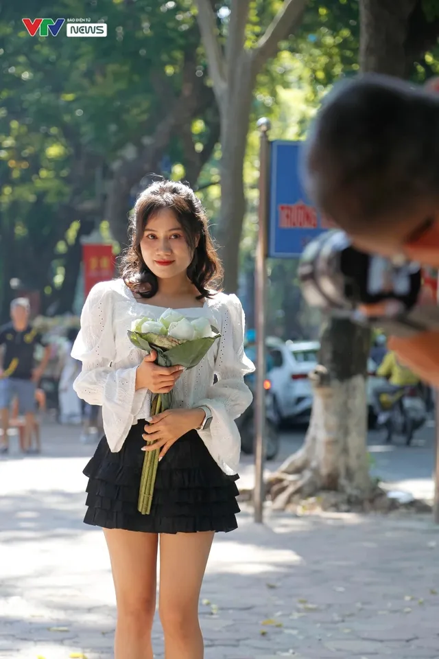 Có những bạn trẻ đi hàng chục km để đến đây như Nguyễn Thị Hoài Thương ở Nam Sách ( Hải Dương). Tranh thủ dịp nghỉ lễ, cô gái trẻ lên kế hoạch cùng bạn bè thực hiện một bộ ảnh mùa Thu Hà Nội (Ảnh: Quang Hải)