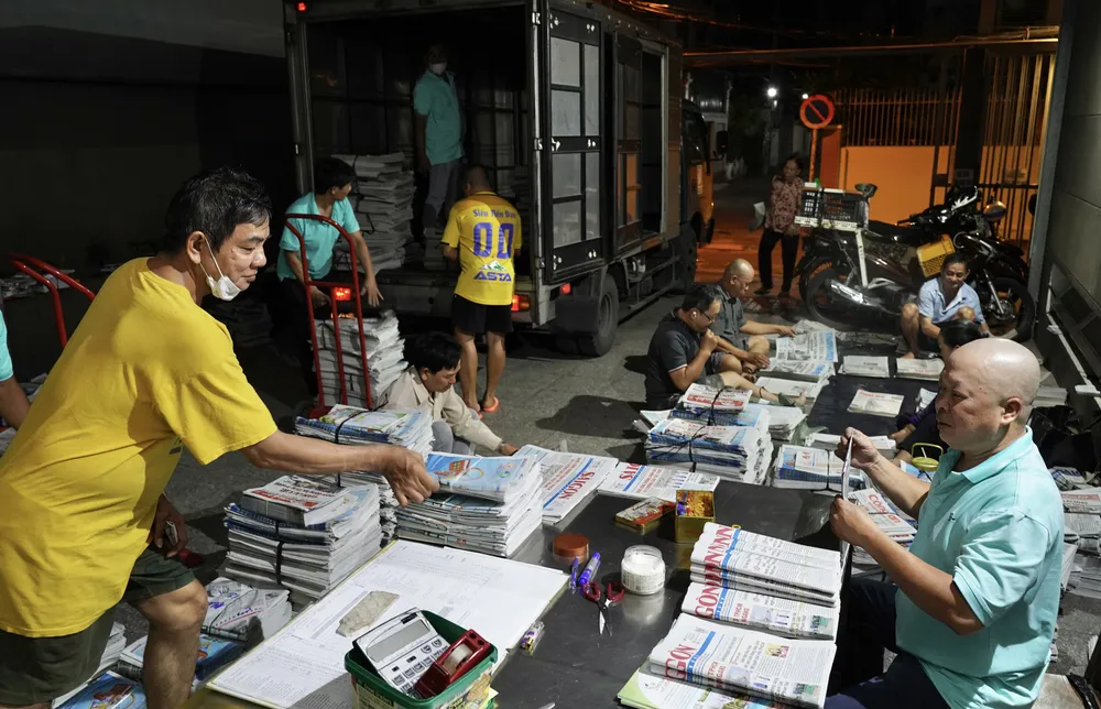 Nhân viên phát hành Báo Sài Gòn Giải Phóng phân phối báo mới in đến các đại lý mỗi ngày. Ảnh: Hoàng Hùng