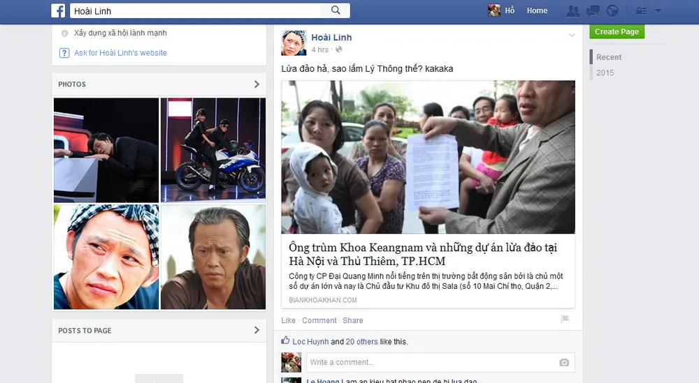 Về việc mạo danh, bà Minh Hồng, người đại diện của ca sĩ Đàm Vĩnh Hưng và ông Thanh Phương người đại diện cho danh hài Hoài Linh cũng đã xác nhận với Ban giám đốc Công ty Đại Quang Minh qua mail là trang facebook nêu trên là mạo danh ca sĩ Đàm Vĩnh Hưng và danh hài Hoài Linh.