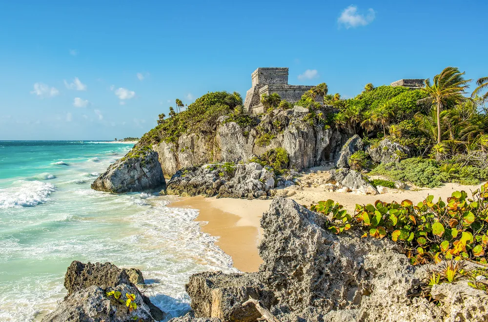Ngoài Chichen Itza, thị trấn bãi biển nổi tiếng nhất Mexico (Tulum), tuy quy mô nhỏ hơn các thành phố của người Maya, nhưng mang đến cho nhiều du khách cảm giác thư thái và yên bình. Nơi đây ngoài các di tích lịch sử, còn có thực phẩm tuyệt vời và vô số câu lạc bộ dọc bãi biển Caribe đáng để chúng ta khám phá. Những tàn tích cổ của người Maya chính là một trong những điều lôi cuốn du khách nhiều nhất bởi vẻ đẹp vô cùng kỳ bí. Kiến trúc ấn tượng nhất vẫn là Castillo, nằm nhỏ gọn trên vách đá vôi ở một bãi cát nhỏ. Nhìn từ trên cao, hình dạng của chúng tựa như những bàn tay vươn ra biển.