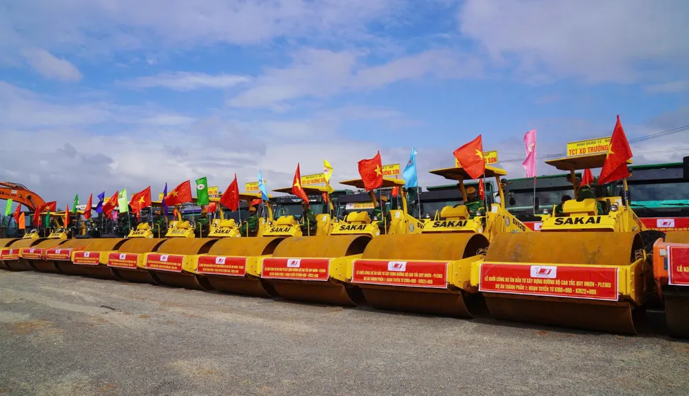 Máy móc được huy động chuẩn bị động thổ, khởi công dự án đường bộ cao tốc Quy Nhơn – Pleiku, gói thành phần số 1. Ảnh: NGỌC OAI