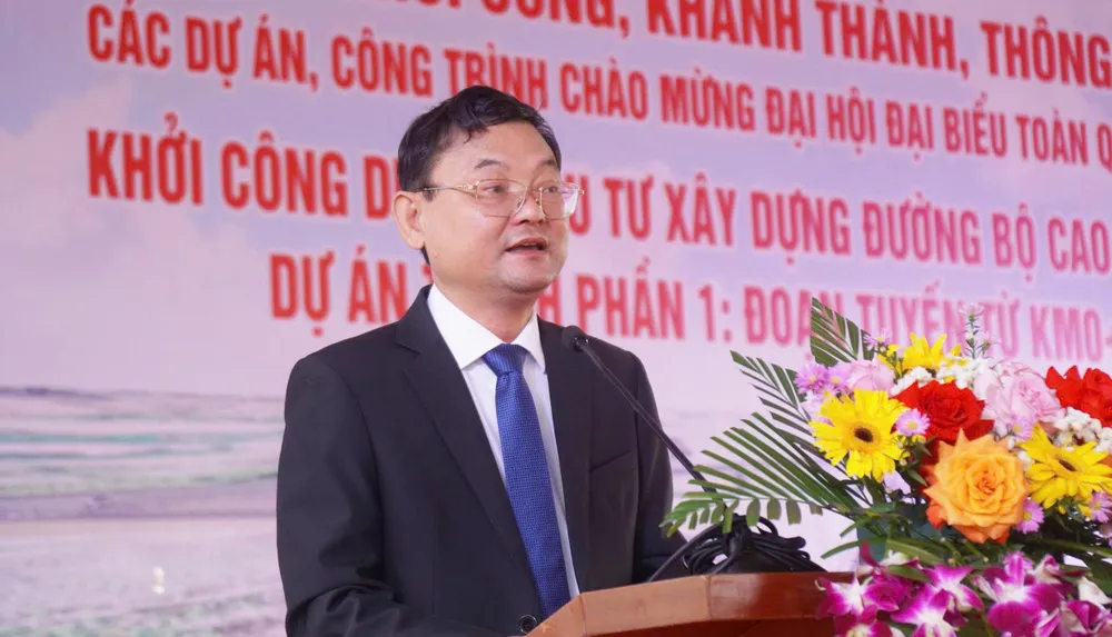 Ông Nguyễn Tự Công Hoàng, Phó Chủ tịch UBND tỉnh Gia Lai phát biểu tại lễ khởi công đường cao tốc Quy Nhơn – Pleiku. Ảnh: NGỌC OAI