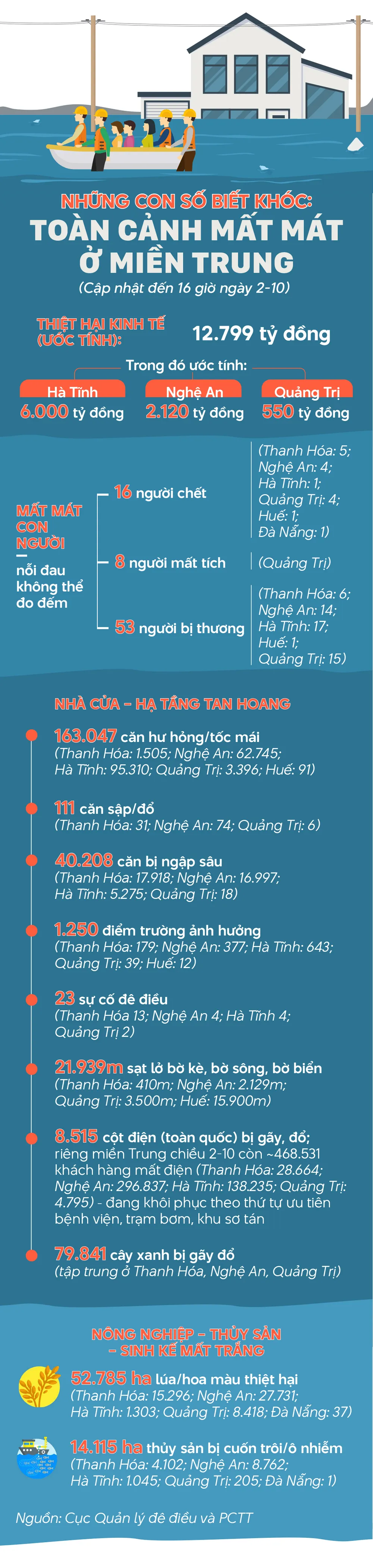 • Rà soát, thống kê thiệt hại đến từng hộ, đề xuất hỗ trợ khẩn cấp ngân sách và vật tư để dựng lại nhà, gia cố đê điều – hồ chứa.