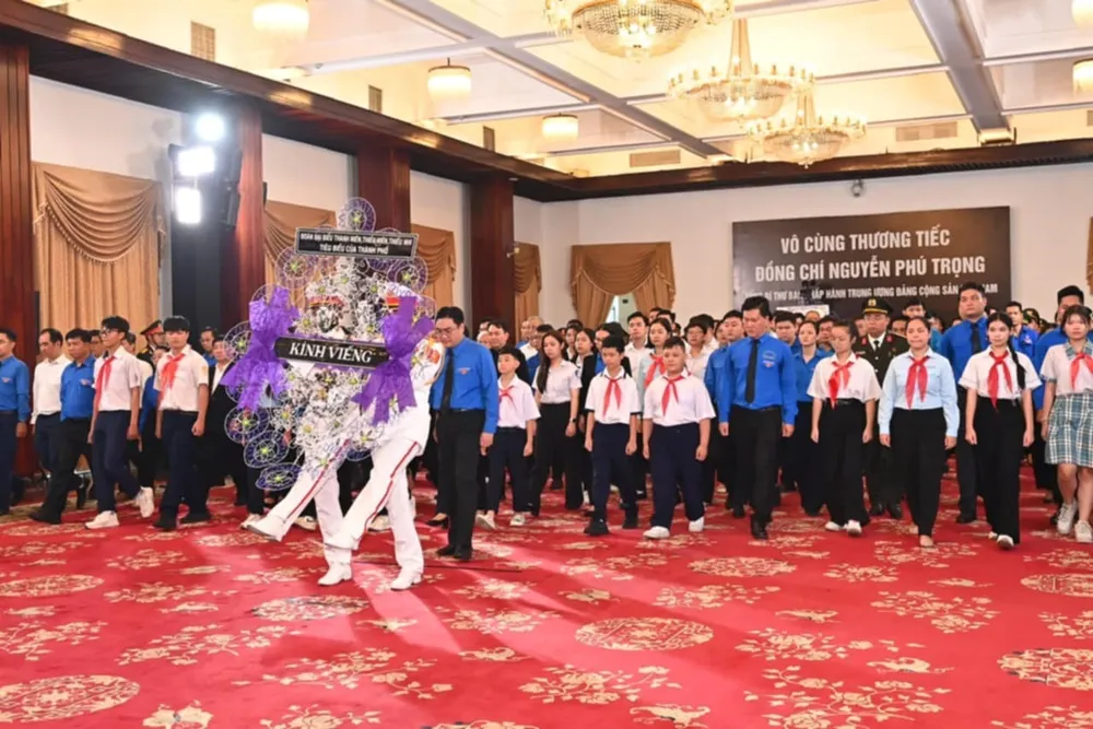 Tuổi trẻ TPHCM viếng Tổng Bí thư Nguyễn Phú Trọng tại Hội trường Thống Nhất (TPHCM). Ảnh: VIỆT DŨNG