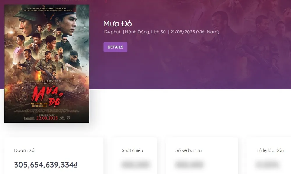Doanh thu hơn 300 tỷ đồng vô cùng ấn tượng của "Mưa đỏ". Nguồn: Box Office Vietnam