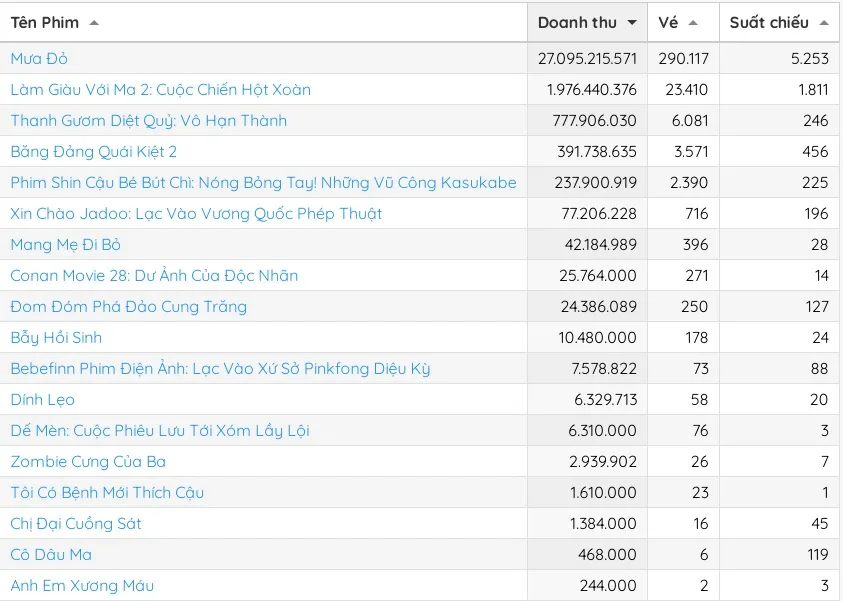 Mưa đỏ hiện đang hoàn toàn áp đảo các bộ phim còn lại đang chiếu tại rạp.