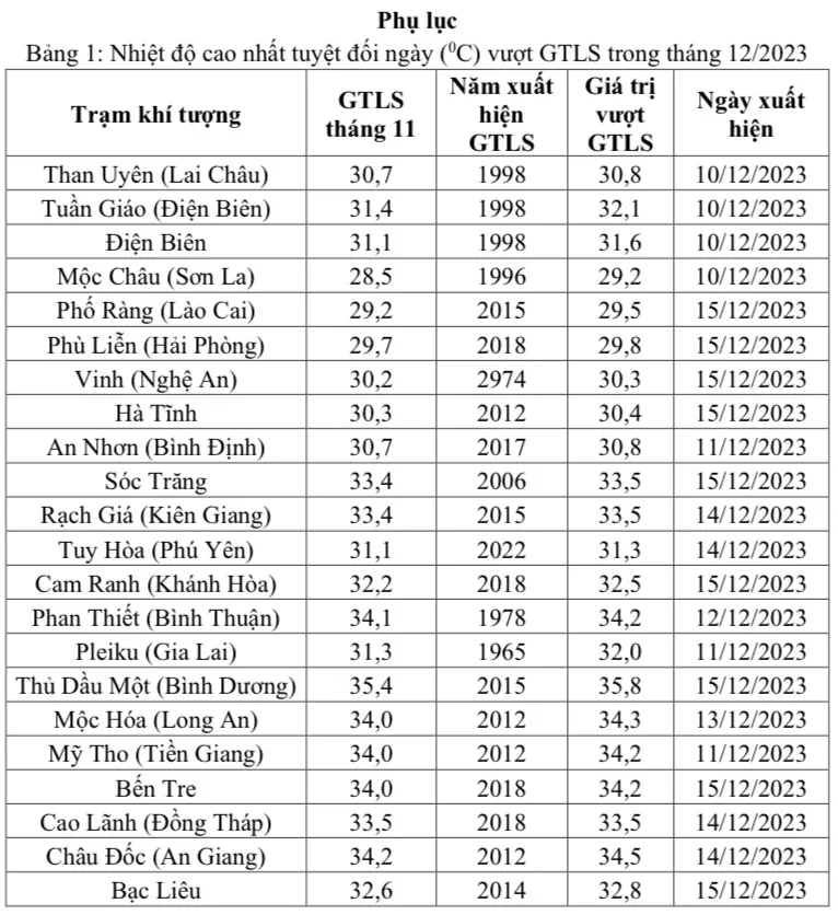 Trong tháng 12, nhiều nơi có nhiệt độ cao kỷ lục. Nguồn số liệu: TTDBKTTVQG