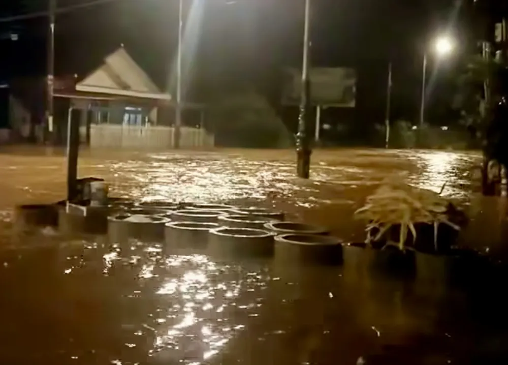 Trước đó, rạng sáng cùng ngày, mưa lớn gây ngập lụt trên diện rộng tại xã Hiệp Thạnh.