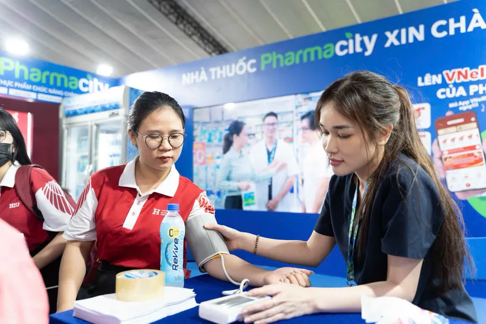 Xuyên suốt sự kiện, khu vực Pharmacity đã trở thành một điểm dừng chân đông khách ghé thăm, với trải nghiệm dịch vụ đo loãng xương hoàn toàn miễn phí và nhận tư vấn sức khỏe cặn kẽ, tận tâm từ đội ngũ dược sĩ có chuyên môn cao của hệ thống. Ngoài ra, hàng ngàn chai nước mát cùng quạt cầm tay được tặng miễn phí, giúp mọi người giải nhiệt và thoải mái hơn khi tham gia ngày hội.