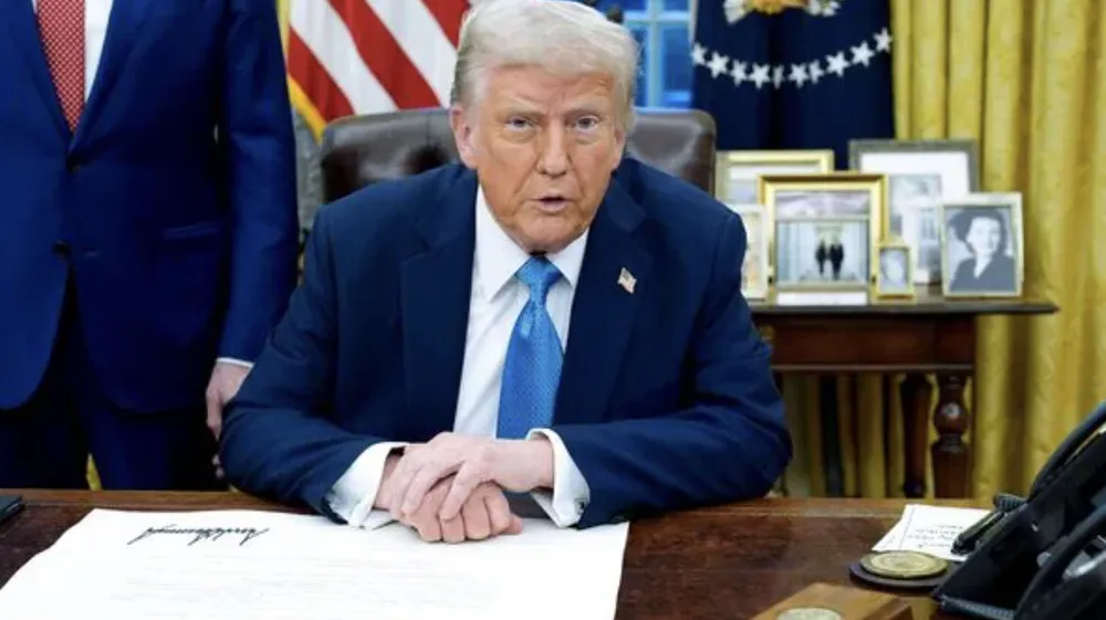 Tổng thống Donald Trump phát biểu trong buổi lễ ký sắc lệnh hành pháp tại Phòng Bầu dục của Nhà Trắng ngày 31-1. Ảnh: BLOOMBERG