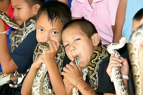60 năm trước, một bác sĩ Thái Lan đã thuyết phục những dân làng coi rắn như... vật nuôi trong nhà và cho khách du lịch chiêm ngưỡng chúng. Đến nay, ngôi làng nhỏ tồi tàn Ban Kok Sa-Nga, tỉnh Khon Kaen phía Đông Bắc Thái Lan ngày xưa đã trở thành một điểm hấp dẫn du lịch, được đông đảo khách ngoại quốc biết đến với tên gọi: "Làng hổ mang".