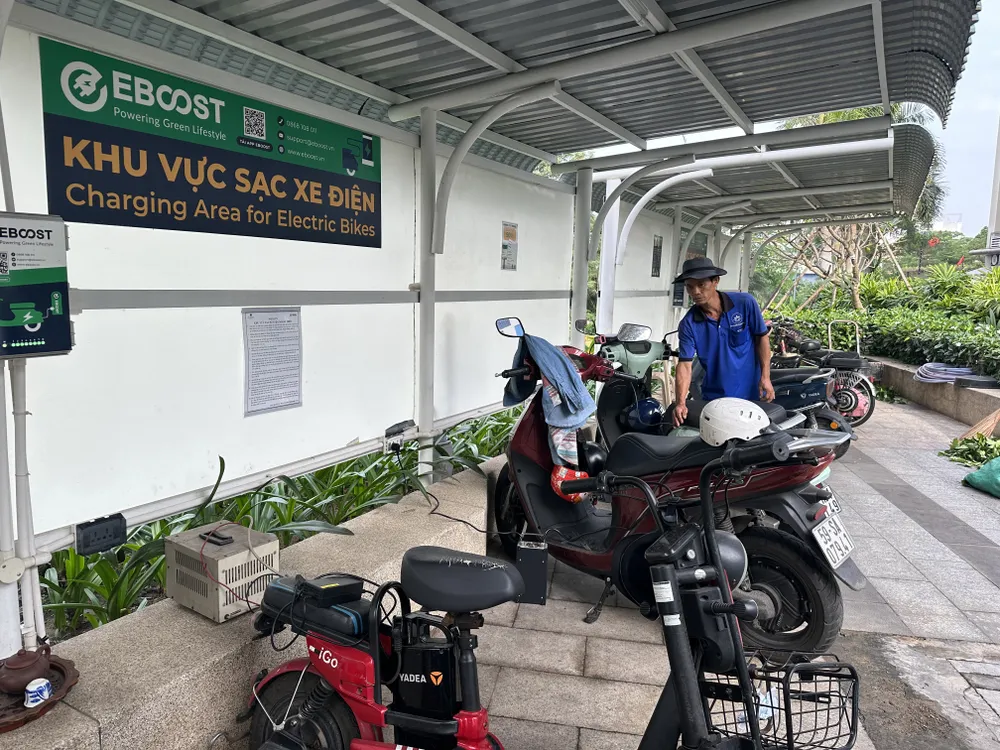 Trong khi đó, tại chung cư Him Lam Nam Sài Gòn, đường số 14, xã Bình Hưng, từ đầu năm nay, ban quản lý đã bố trí điểm sạc pin trước cửa nhà sinh hoạt cộng đồng, tất cả xe dùng chung 1 đồng hồ điện, phí gửi xe và tiền điện sạc là 120.000 đồng/xe/tháng và sẽ có điều chỉnh cho phù hợp lượng điện tiêu thụ.