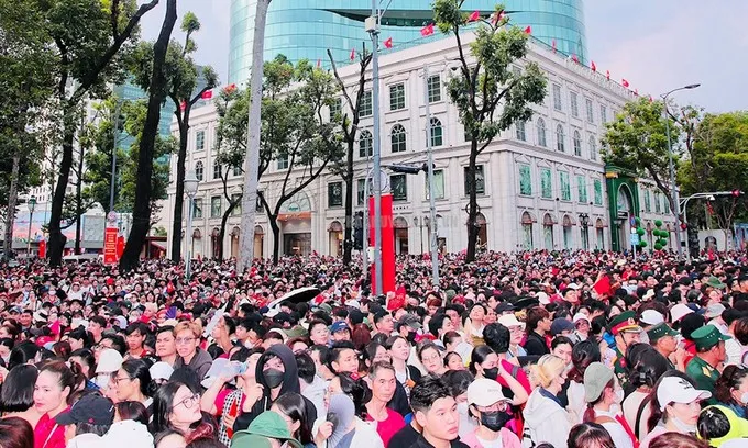 Người dân TPHCM nô nức đi xem Tổng duyệt diễu binh, diễu hành Kỷ niệm 50 năm Ngày Giải phóng miền Nam, thống nhất đất nước
