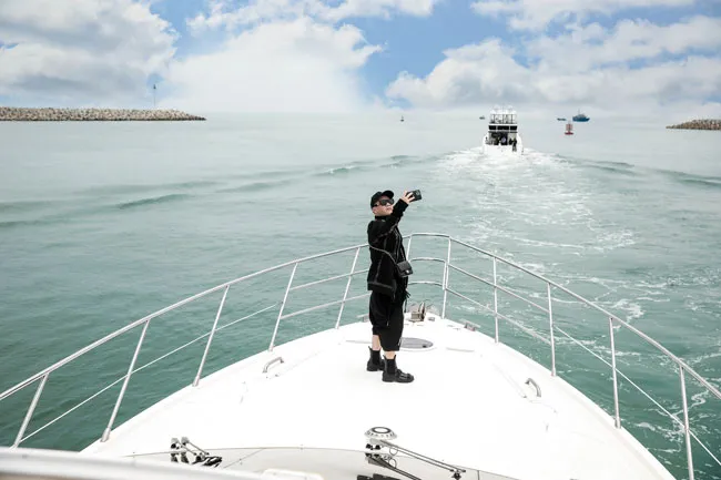 Nhà thiết kế Đỗ Mạnh Cường ghi lại khoảnh khắc đẹp khi dạo chơi du thuyền.