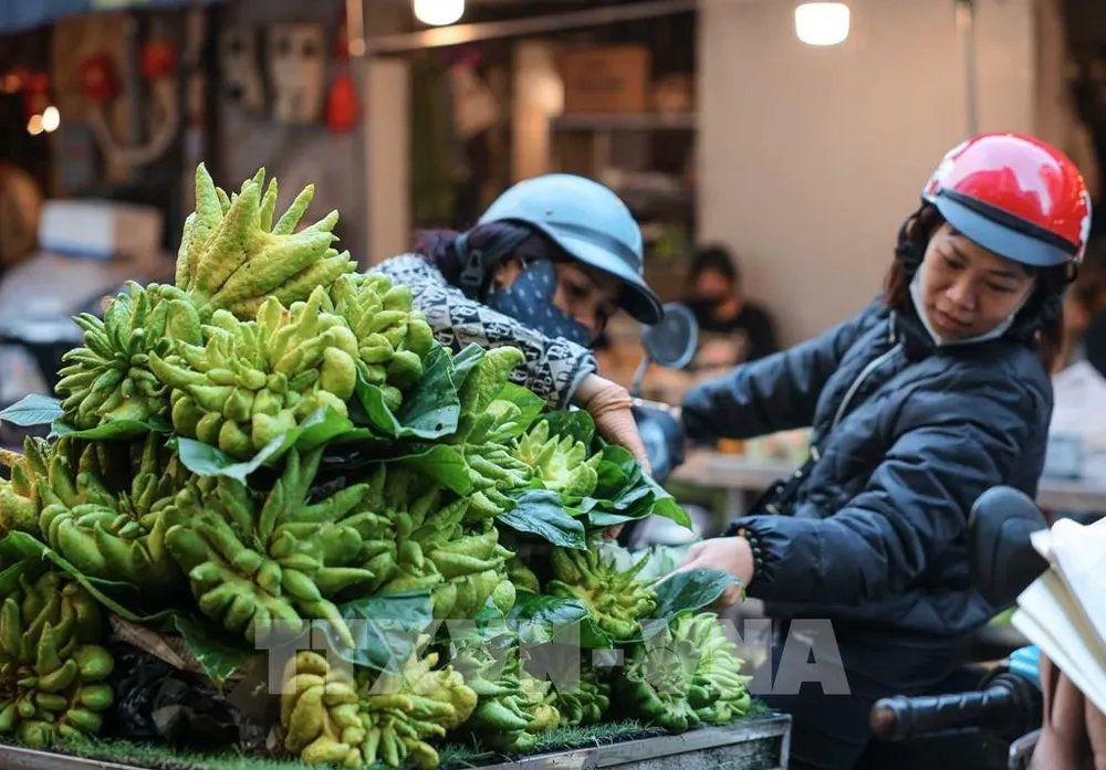Tìm mua phật thủ ưng ý dâng lên bàn thờ gia tiên. Ảnh: Hoàng Hiếu - TTXVN
