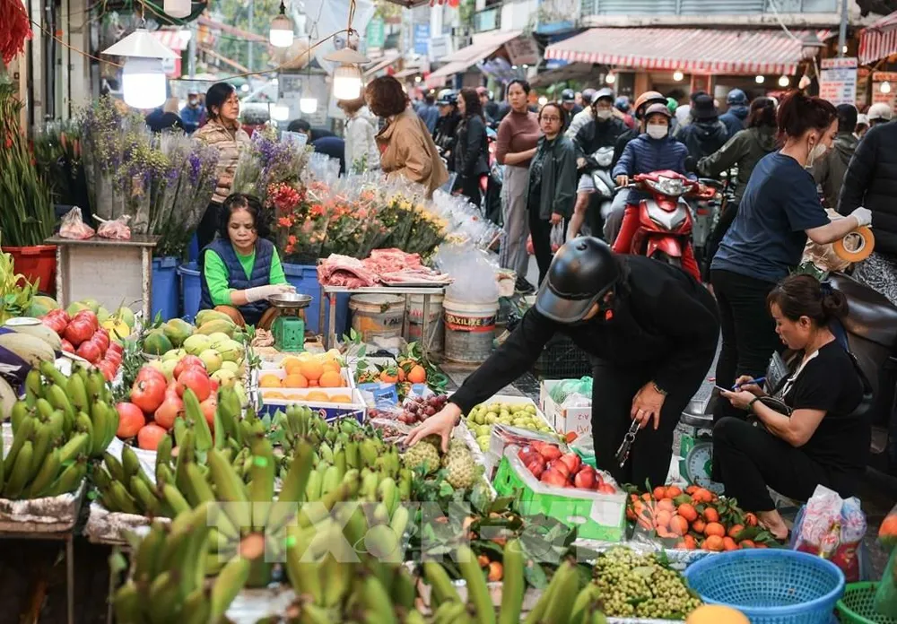 Các chợ truyền thống nhộn nhịp người mua, người bán trong phiên chợ cuối cùng năm Ất Tỵ. Ảnh: Hoàng Hiếu - TTXVN