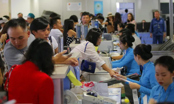 Chiều 31-7, ghi nhận tại sân bay Tân Sơn Nhất, các màn hình thông báo chuyến bay đến, đi và các màn hình quảng cáo hoạt động bình thường. Khách hàng đến mua vé trực tiếp tại các quầy và làm thủ tục diễn ra suôn sẻ.