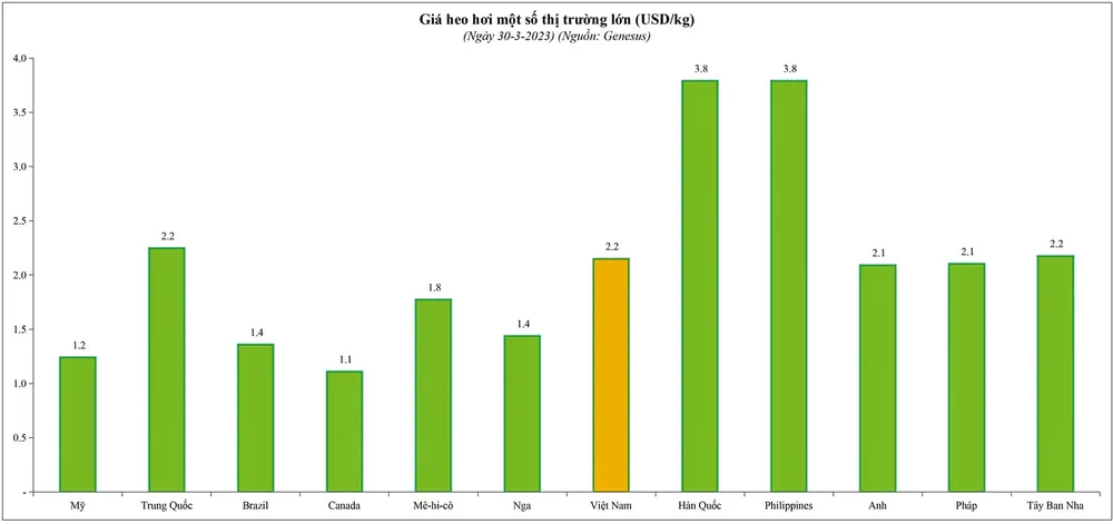 Theo thống kê của hãng Genesus, giá heo hơi tại các thị trường lớn ở châu Âu đã chứng kiến sự tăng giá mạnh so với thời điểm quý II năm ngoái. Nguyên nhân tác động bởi chiến sự Nga - Ukraine làm ảnh hưởng tới giá nguyên liệu trong khu vực. Tính tới cuối tháng 3, giá heo ở châu Âu giao dịch quanh mức 2,2USD/kg, tăng hơn 30% so với mức giá 1,6USD/kg hồi tháng 7-2022.