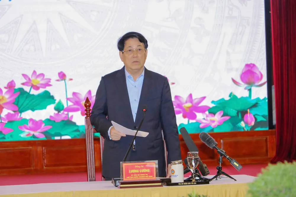 Chủ tịch nước đề nghị, trong thời gian tới, ngành tòa án cần tập trung thực hiện tốt nhiệm vụ trọng tâm, xây dựng cơ quan tinh - gọn - mạnh, hoạt động hiệu lực hiệu quả; gắn với nâng cao chất lượng, sức chiến đấu cơ quan, tổ chức đảng, tổ chức bộ máy tòa án các cấp.