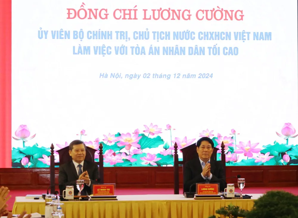 Tại buổi làm việc, Chủ tịch nước khẳng định, từ đầu nhiệm kỳ Đại hội lần thứ XIII của Đảng đến nay, bên cạnh rất nhiều thuận lợi, ngành tòa án cũng gặp không ít khó khăn. Thế nhưng, toàn ngành đã nắm chắc chức năng, nhiệm vụ, đoàn kết nỗ lực hoàn thành tốt các nhiệm vụ, chức trách theo quy định, không bỏ sót, thực hiện nhiệm vụ có trọng tâm, trọng điểm.