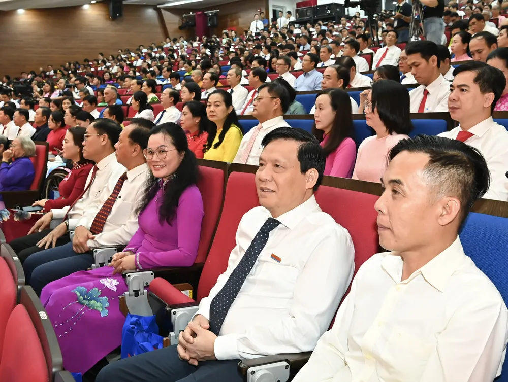Các điển hình tiên tiến tham dự Đại hội Thi đua yêu nước TPHCM lần thứ I sáng 25-10. Ảnh NGUYỄN HOÀNG