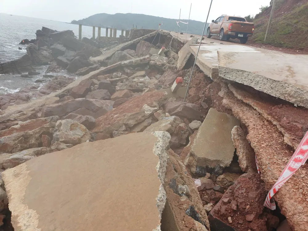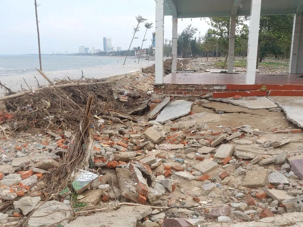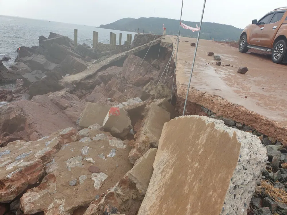 Kè biển tại xã Hải Lộc tan hoang sau bão