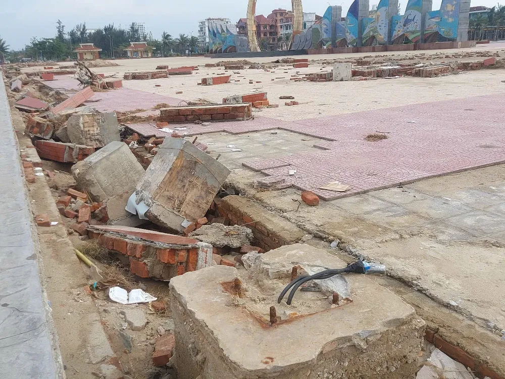 Ông Hoàng Minh Thọ, Phó Trưởng phòng Kinh tế - Hạ tầng phường Cửa Lò, cho biết, ngoài quảng trường Bình Minh, sóng lớn đã gây xói lở nghiêm trọng khu lâm viên đường Bình Minh với chiều dài 3,77km, rộng 10-15m, sâu tới 1m; bên cạnh đó có 5 đoạn kè biển bị sập, hư hỏng nặng.