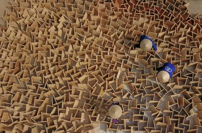 Giáo dân Phạm Đăng Khuyến, Giám đốc Công ty Trách nhiệm Hữu Hạn Xuất khẩu và Đầu tư Thành Hóa kiểm tra sản phẩm của công ty. (Ảnh: Minh Đức/TTXVN)