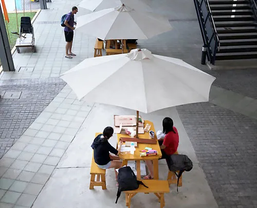 Ngoài giờ học trên lớp, học sinh gặp gỡ hoặc học nhóm, trao đổi nhóm ở các sảnh trong khuôn viên. Có sân khấu riêng để học sinh tổ chức các hoạt động diễn kịch, nghệ thuật. Có sân khấu riêng để học sinh tổ chức các hoạt động diễn kịch, nghệ thuật.