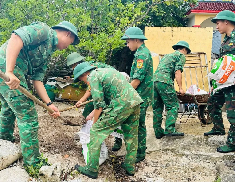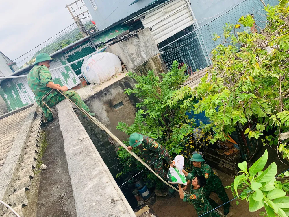Đồn Biên phòng cũng triển khai lực lượng chằng chống nhà cửa, hỗ trợ vật phẩm cho các hộ gia đình neo đơn, người già trên địa bàn huyện.