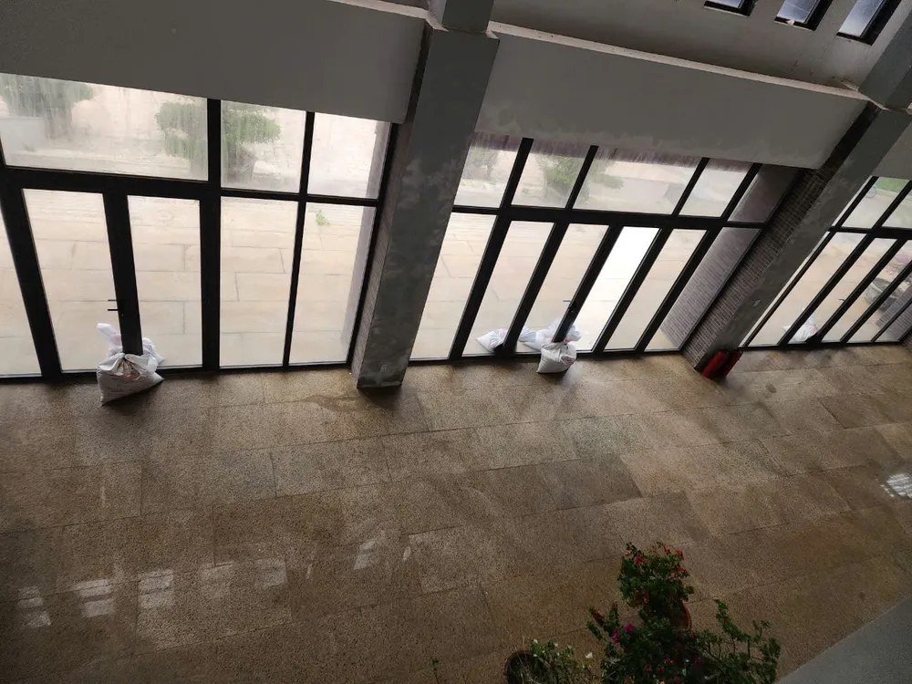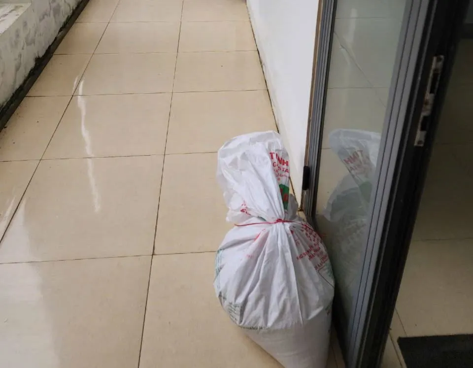 Một bao cát đặt sát cửa ra vào để chống gió