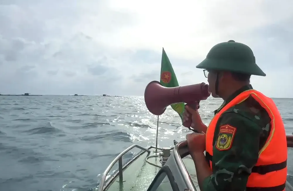 Đồn Biên phòng Lý Sơn tuần tra trên biển, kêu gọi tàu thuyền và lồng bè vào nơi tránh trú trước bão số 6