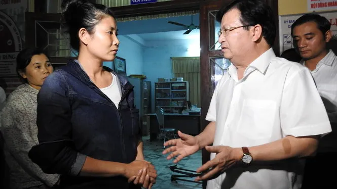 Tại xã Bảo Ninh, TP. Đồng Hới, Quảng Bình, Phó Thủ tướng Trịnh Đình Dũng cùng lãnh đạo tỉnh gặp gỡ bà con ngư dân, tìm hiểu thiệt hại, cũng như tâm tư, nguyện vọng của bà con.
