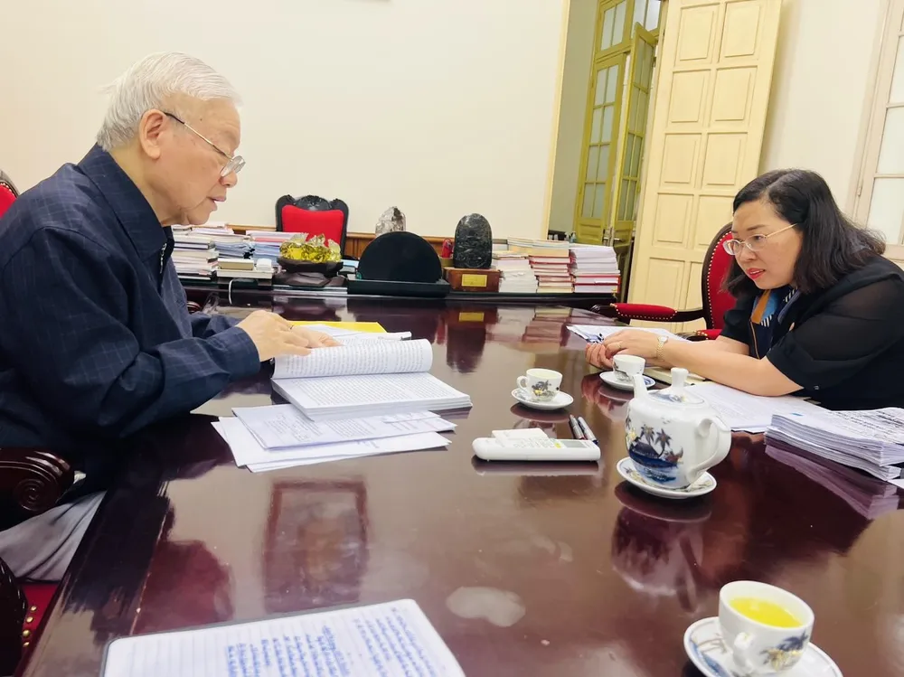 Tháng 4-2023, khi đang thực hiện bản thảo sách Một số vấn đề về đường lối quân sự, chiến lược quốc phòng trong sự nghiệp xây dựng và bảo vệ Tổ quốc Việt Nam xã hội chủ nghĩa thời kỳ mới, tôi được gặp Tổng Bí thư để báo cáo về các công việc chuẩn bị cho bản thảo. Trước khi báo cáo bác về công việc, bác hỏi thăm tôi về gia đình, con cái và chia buồn với gia đình tôi (vì khi đó mẹ chồng tôi mới mất). Vẫn là những lời hỏi thăm ân cần như bao lần khác, thật gần gũi, thân thương mà tôi cảm nhận bác - như một người cha căn dặn con gái.