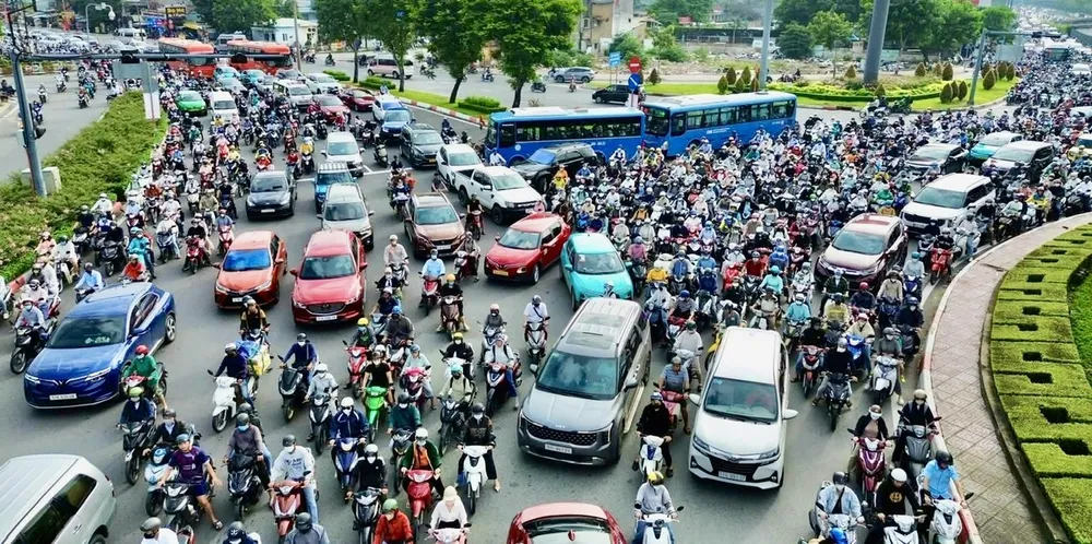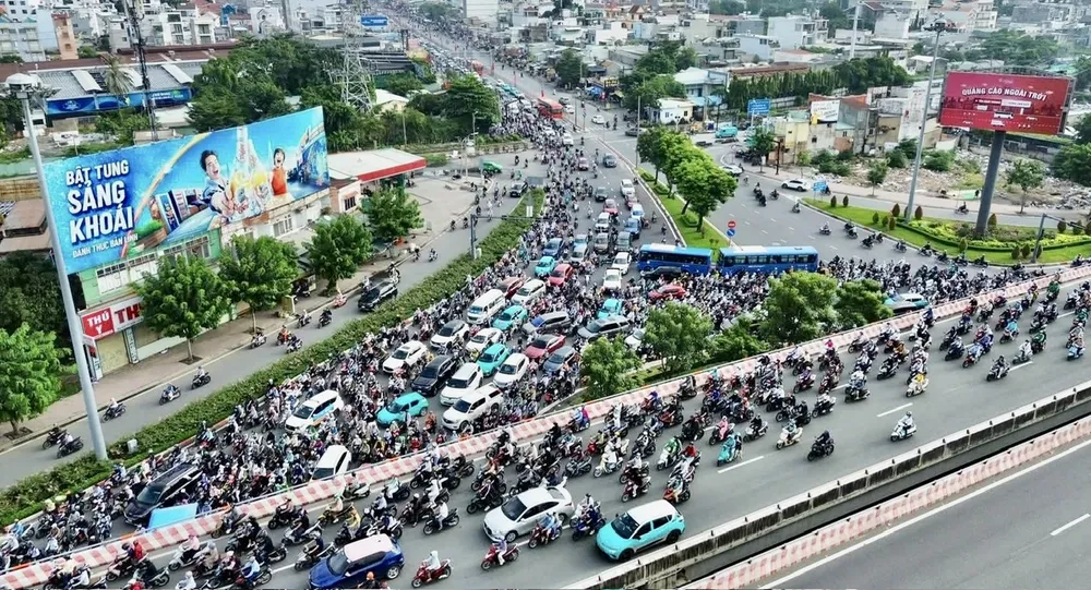 Giao thông khu vực cầu Bình Triệu ùn ứ nghiêm trọng. Ảnh: QUỐC HÙNG