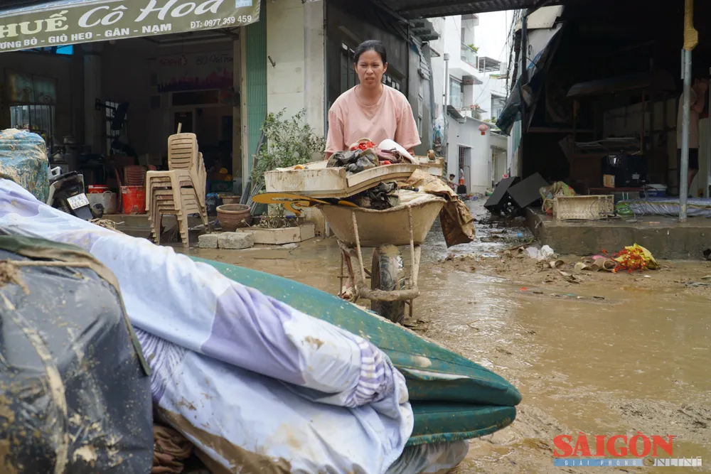 Chị Lê Thị Loan (phường Tây Nha Trang) cho biết, khi nước vừa rút, vợ chồng chị mở cửa hàng và sững sờ thấy toàn bộ hàng hóa bị xáo trộn, dù trước đó đã kê cao hơn 1m. Những đợt trước, nước lên chậm, cao nhất chỉ khoảng 50cm, nhưng lần này nước dâng quá nhanh, buộc gia đình phải di tản khẩn cấp đến nơi an toàn.