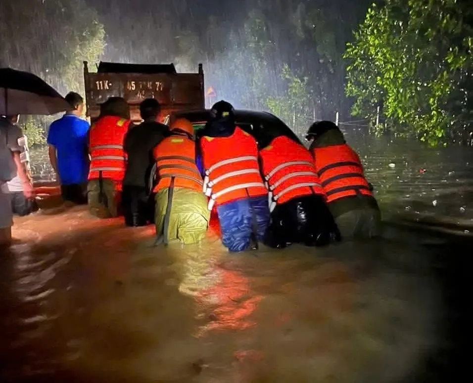Trong đêm, lực lượng của xã Mường Xén đã cứu hộ thành công một gia đình 5 người ở khối 5 (xã Mường Xén) bị mắc kẹt giữa dòng nước lũ. Do nước lũ về quá nhanh, nhà này nằm bên sông nên gia đình không kịp ra khỏi nhà để di chuyển lên vùng cao. Trước tình hình đó, lực lượng cứu hộ đã dùng dây thừng, cho người bơi đến vị trí 5 người mắc kẹt, sau đó đưa từng người ra khỏi khu vực nguy hiểm.