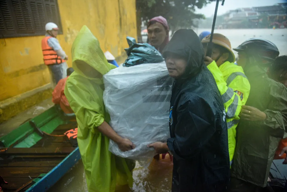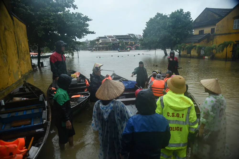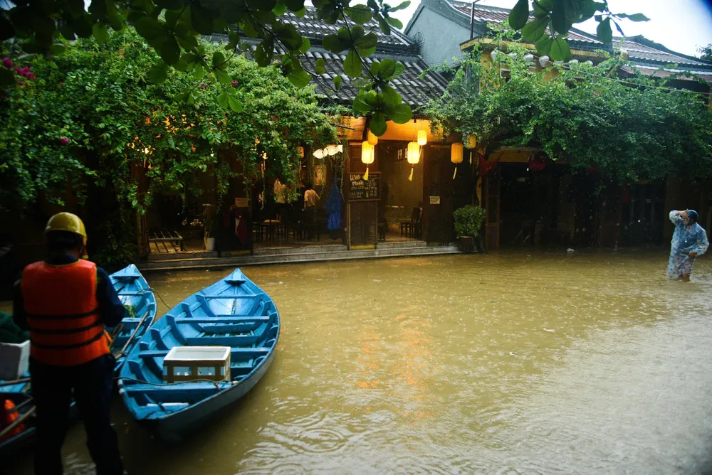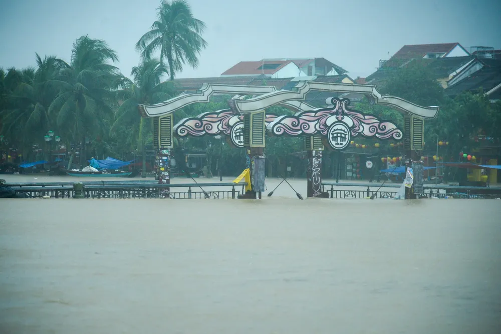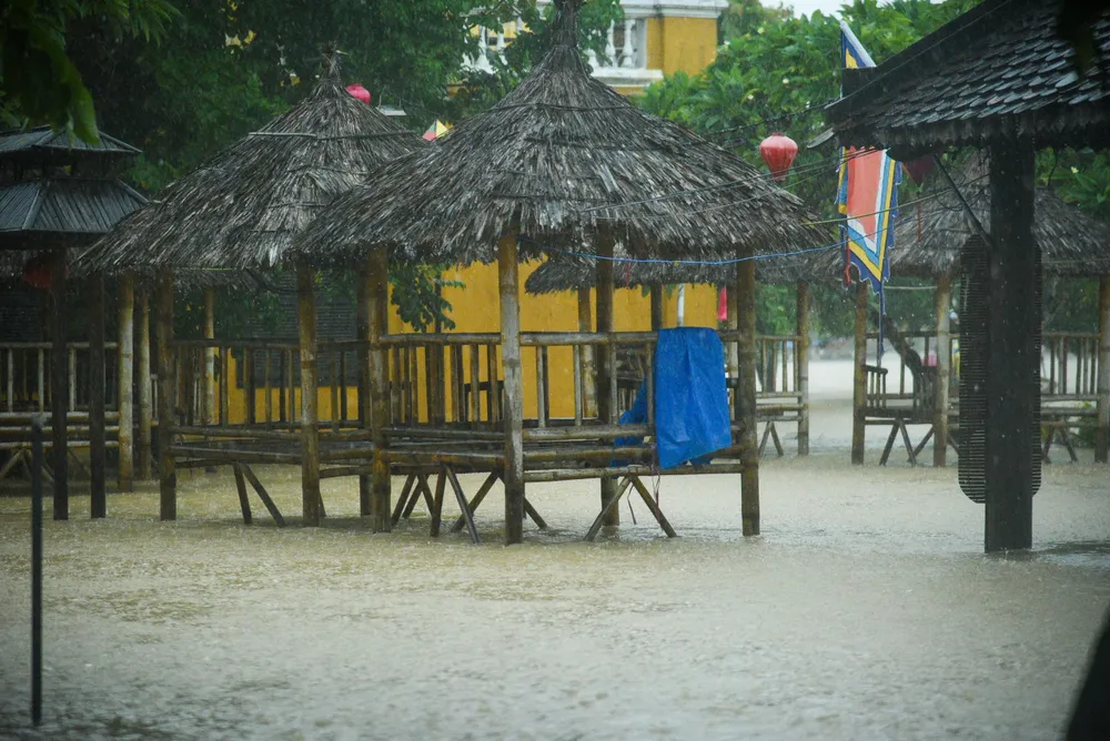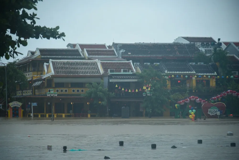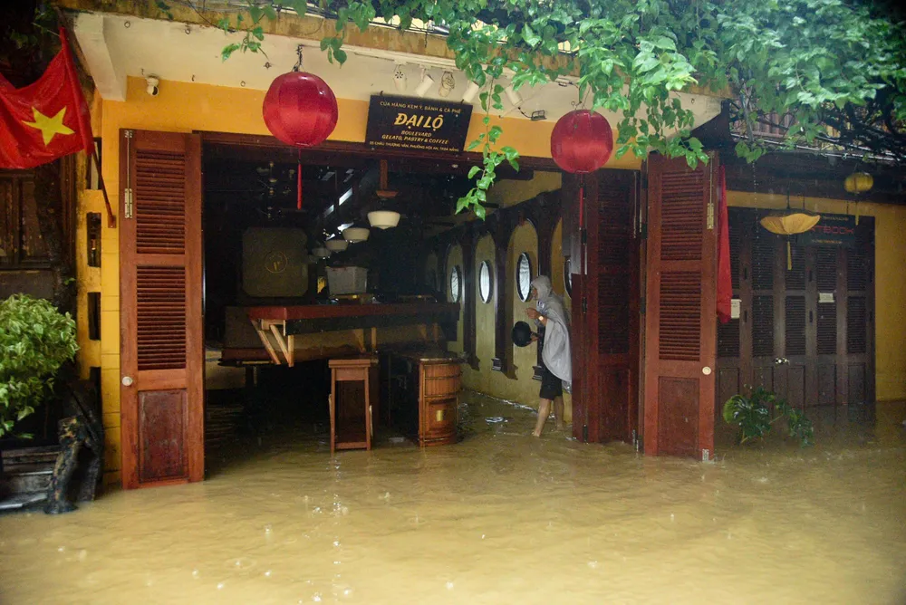 Mưa lớn kéo dài kết hợp với nước lũ từ thượng nguồn đổ về khiến mực nước sông Hoài dâng cao, tràn vào phố cổ Hội An (phường Hội An, TP Đà Nẵng) gây ngập lụt nghiêm trọng tại nhiều tuyến đường trung tâm.