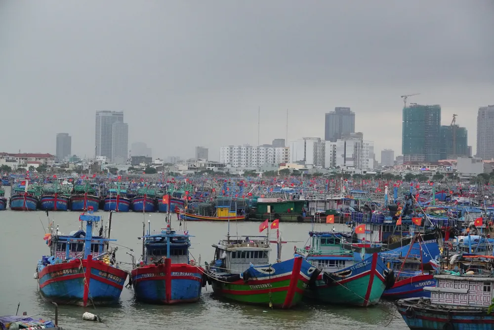 Tại âu thuyền và cảng cá Thọ Quang, hơn 3.500 tàu cá Đà Nẵng cùng hàng trăm tàu các tỉnh miền Trung đã vào neo đậu tránh bão. Ngư dân Sơn Trà khẩn trương đưa tàu thuyền lên bờ, tận dụng các bãi đất trống dọc đường Hoàng Sa, Lê Văn Lương làm nơi tránh trú.