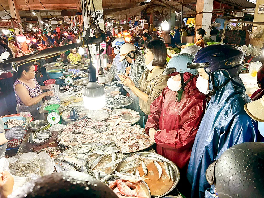 Đông đảo người dân mua lương thực dự trữ tại chợ Thanh Vinh (phường Liên Chiểu, TP Đà Nẵng). Ảnh: XUÂN QUỲNH
