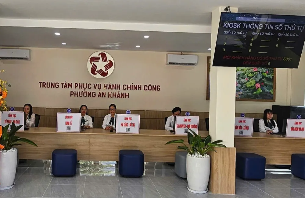 Công chức Trung tâm Phục vụ Hành chính công phường An Khánh sẵn sàng cho việc vận hành công việc của phường mới. Ảnh: THU HƯỜNG