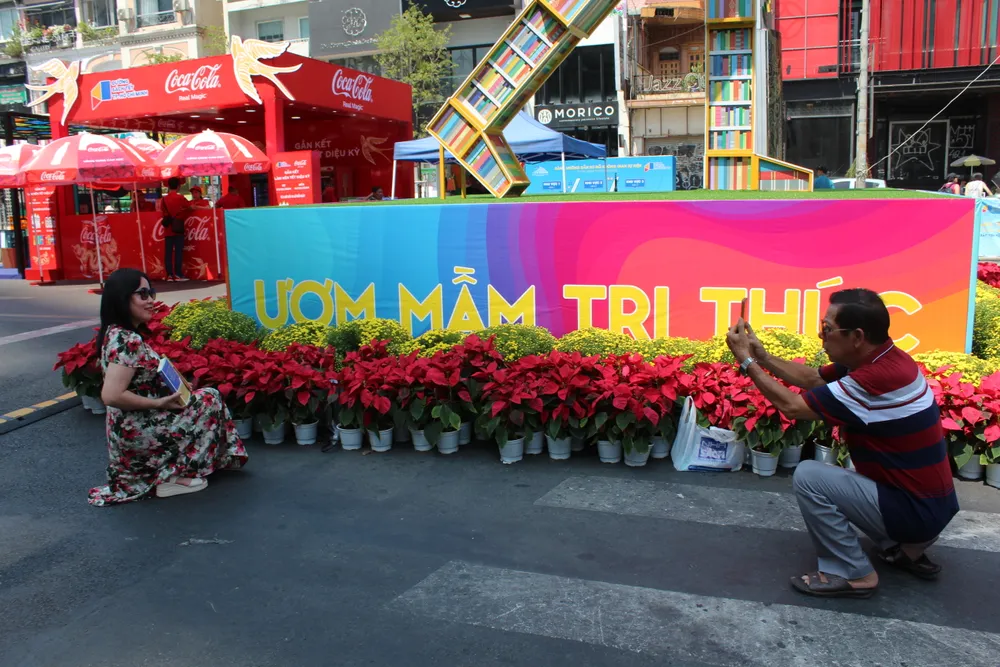 Tranh thủ đưa vợ, các con đến đường hoa và Lễ hội sách Tết TPHCM du xuân, anh Phạm Minh (ngụ quận 10, TPHCM) cho biết, đã rút kinh nghiệm từ lần trước nên đến rất sớm để thoải mái chụp ảnh cho gia đình.